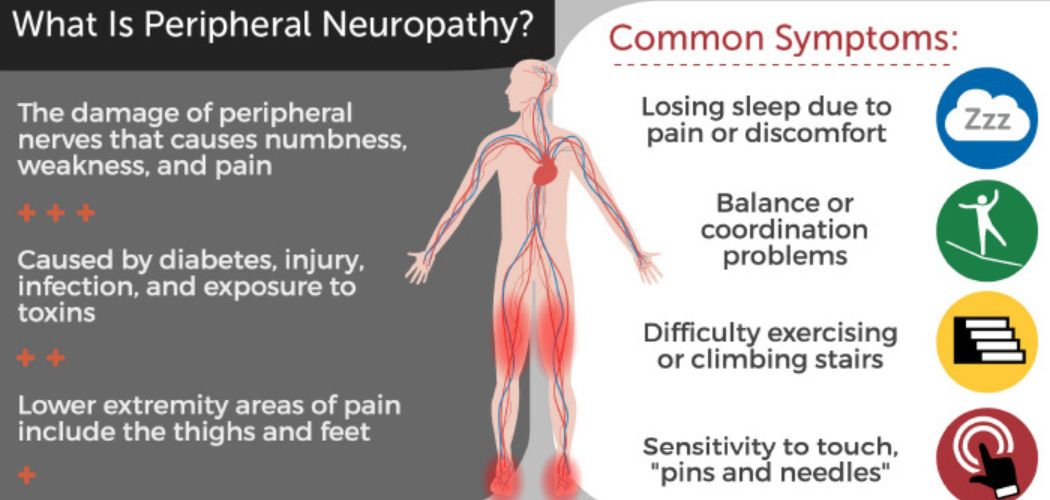 Peripheral Neuropathy refers to conditions that result when nerves carrying messages from the brain and spinal cord to the rest of the body are damaged or inflamed.